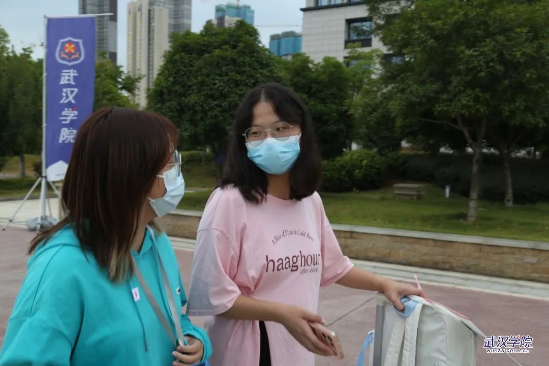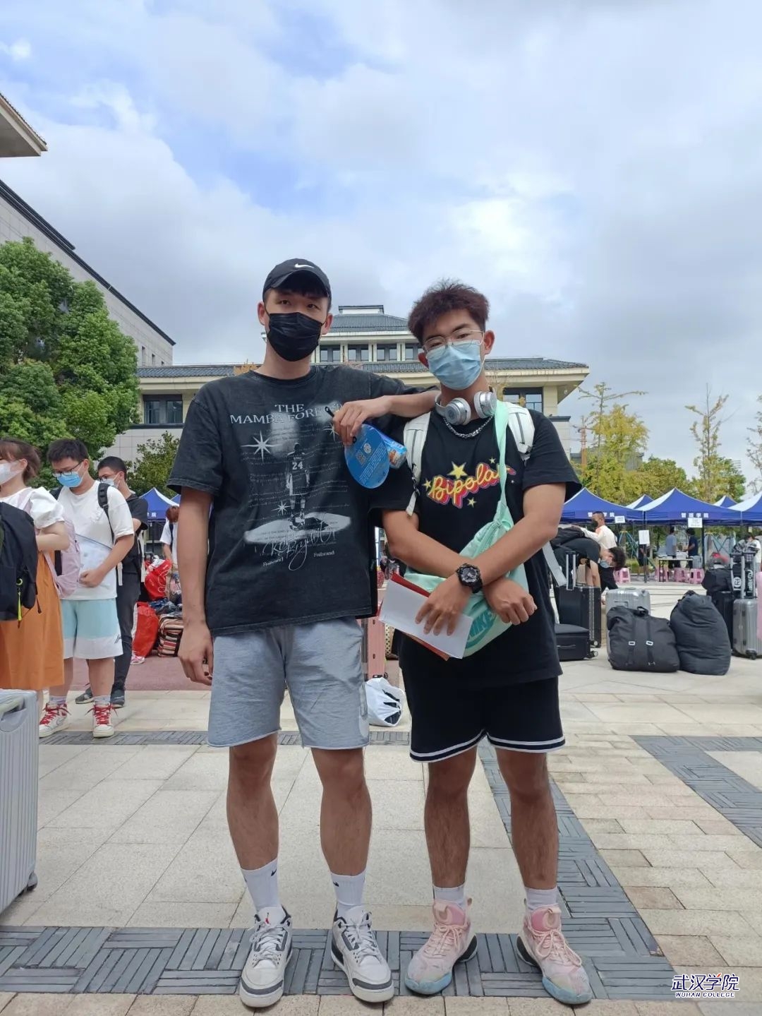疫情影响下,家长不能送学生入校,不少学生选择与同学结伴而行。商务英语(专)2203班的邓佳怡、肖梦琳、李瑞萍分别来自荆州、麻城、河北,三人住同一个寝室,在入校前,她们就约好在学校门口汇合,大家一起互相帮助搬行李。还有来自恩施的何仁利和黎茂梅,更是从家相约出发,在高铁上就已经成为亲密无间的好朋友。先到接后到也是学生互助的方式之一,会计学院的高彤作为宿舍第一个来的人,放下行李后便来校门口迎接室友李昕旸,两人还打算等剩下两名室友来的时候,一起再去接她们。迎新现场,也不乏独自从外地独自赶来的学生,法律事务2203的邵雅鑫和梁雅贤,刚刚办好手续,就给家长报了平安。