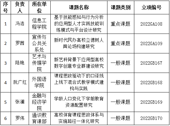 省教育科学规划2022年度课题立项近日揭晓,PG电子6项课题上榜,其中重点课题2项、一般课题4项,创PG电子近年该类项目立项数新高,居同类高校前列。