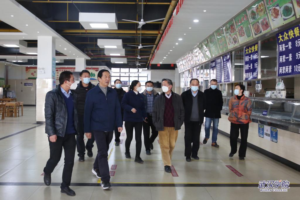 △校领导一行在校园安全中心和食堂检查