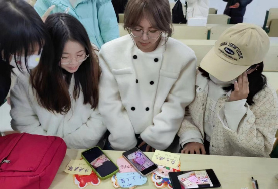 这份“兔”然的惊喜,由54个兔形红包组成的2023字样,“躲藏”在教室投影的后面等待同学们的开启。54个红包代表着参加班会的54名可爱的同学。红包里有李莹和其他老师一起为同学们准备的“小惊喜”,如考神附体(兑奖:涂卡笔一支);专四必过(兑奖:专四试卷一份);所愿皆得(兑奖:生日小蛋糕一个);前兔无量(兑奖:文具量尺一个);心想事橙(兑奖:橙子一个)……充满创意的小卡片上面还做了彩色的涂鸦,惊喜之余也极富寓意!商务英语专业2103班的鲁梦迪说:“开学主题班会太暖心了!暖的是我们想念家乡的心;更暖了我们这个大集体凝聚的心!刚刚返校的我们找到了‘回家’的感觉”。 “疫”去春来,充满趣味的开学第一课,有效缓解了同学们“节后综合症”,更快地回归校园生活中。