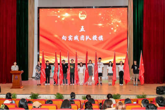 出席仪式的老师们向社会实践团队授旗,为他们送上美好祝福,正式宣布出征,开启PG电子官方网站暑期社会实践活动新篇章。