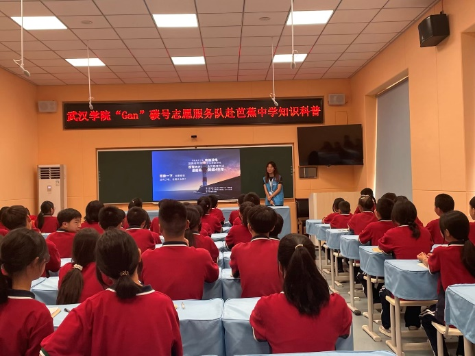 "Gan"碳号志愿服务队连续两年入选团中央与中国核工业集团联合招募的大学生核知识理论科普志愿宣讲团,对“两弹一星”精神有着专业的理解。针对本次宣讲对象的身份,团队合理利用2023年团中央与中国核工业集团联合举办“两弹一星精神志愿宣讲”活动下发关于核理论的宣讲材料,团队成员通过认真学习后选取适合初中生学习的核科技知识版块,仔细打磨自己的课程。在经历11场宣讲、两场知识竞赛、多次播放专题视频等形式共进行十二天的核科技知识宣讲后。对恩施市芭蕉侗族乡初级中学的学生产生积极影响。