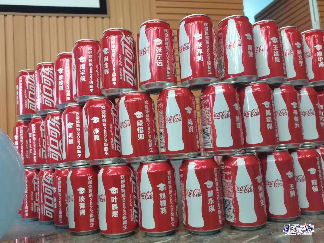 “报到先颠球,酷暑不上头!跳远四米五,搬运不辛苦!”体育系脑洞大开,为新生准备了许多迎新小游戏,新同学们可以挑战颠乒乓球、投掷网球、跳远、扔飞盘等体育相关小游戏,能够赢得精美礼品的同时,还能获得学长学姐帮忙搬运行李。除此以外,体育系还为每名新生准备了印有名字的专属定制可乐。