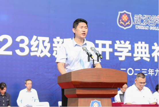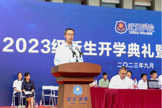 副校长罗航教授宣读《关于颁发2023年新生奖学金的通知》,宣布学校在湖北一丹大学教育发展基金会的支持下,秉承非营利性公益办学宗旨,向25名优秀新生颁发每人一万元新生奖学金,向17名优秀新生颁发每人五千元新生奖学金。