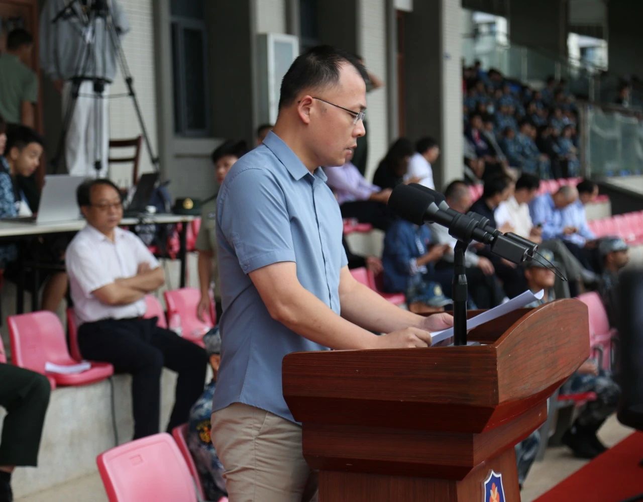 新生代表发言校党委书记陈祖亮教授在大会上讲话。他指出,军训只是大学的第一课,希望同学们把军训中练就的好传统、好作风,带到今后的学习、生活之中,让自律成为一种习惯、让优秀成为一种习惯。他希望同学们坚定理想信念、增强社会责任感,牢记习近平总书记对新时代中国青年树立远大理想、热爱伟大祖国、担当时代责任、勇于砥砺奋斗、练就过硬本领,锤炼品德修为的要求,坚定不移听党话、跟党走,永远跟祖国站在一起,与人民站在一起,践行使命担当,立志做有理想、敢担当、能吃苦、肯奋斗的新时代好青年。希望同学们谨记“明德创新 解行并进”的校训,与时代同向,在美好的大学生活里不断汲取知识、提升素质、增长才干、练就本领,勇于探索创新,让青春在大学四年的生活中演绎出精彩的篇章。