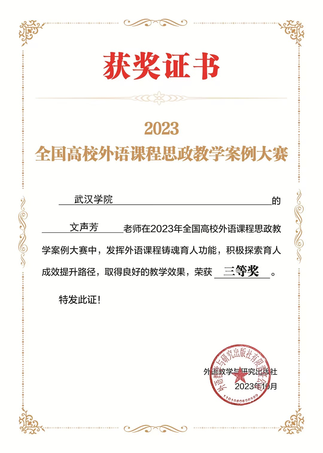 近日,由外语教学与研究出版社主办的2023年全国高校外语课程思政教学案例大赛获奖结果揭晓,PG电子外国语学院教师脱颖而出,揽获5个全国奖项。