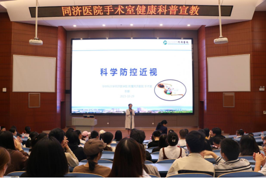 同济医院党员代表李娜为师生带来《科学防控近视》主题科普知识宣讲。她分享了近视的现状、近视及高度近视的危害,强调近视可防可控,呼吁大学生注重近视的防控,养成健康科学用眼习惯。