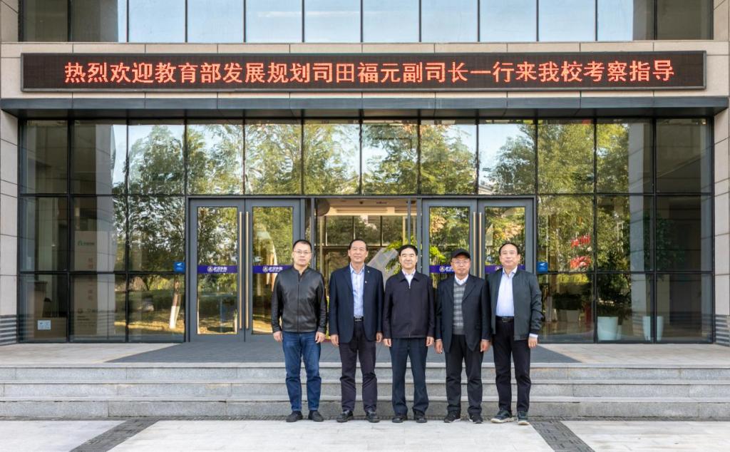 11月6日下午,教育部发展规划司副司长田福元一行莅临PG电子考察指导,校长李忠云教授、副校长周承早、校长助理胡达丰在206会议室接待来宾。