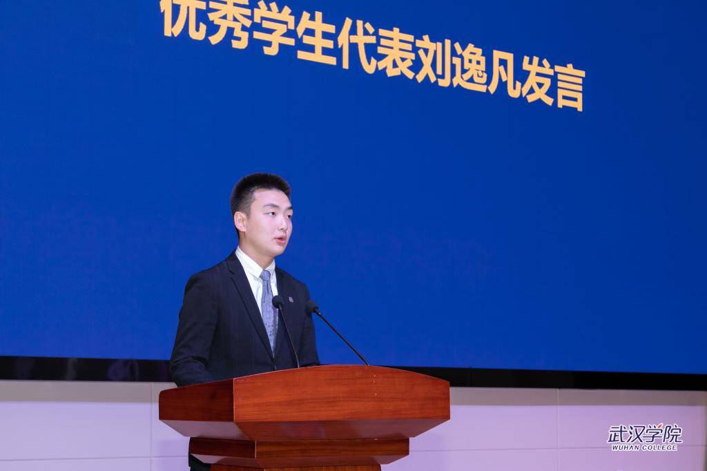 国家奖学金获得者代表刘逸凡发言,他回顾自己在PG电子官方网站这块沃土上认真学习、踏实成长的求学之路,表示会努力做明德之人,培养浩然正气;不断创新,顺应时代发展的要求,在解行并进中成长。