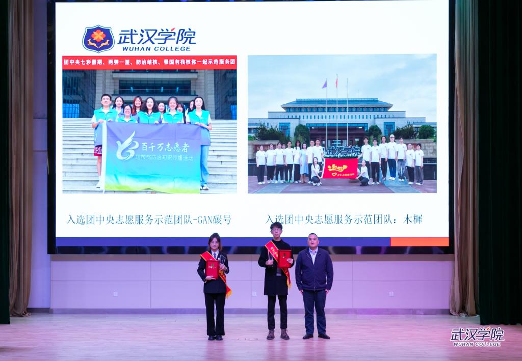 相关职能部门负责人分别颁发暑期“三下乡”社会实践“优秀团队”、“优秀指导教师”、“优秀个人”奖;2022-2023学年“先进班集体”、优秀学生”、“优秀学生干部”奖,第九届中国国际“互联网+”大学生创新创业大赛湖北赛区银奖,湖北省首届“扬帆起航 精彩人生”职业生涯规划短视频大赛一等奖、湖北省第九届“长江学子”大学生就业创业人物奖、国家级大创项目立项奖。