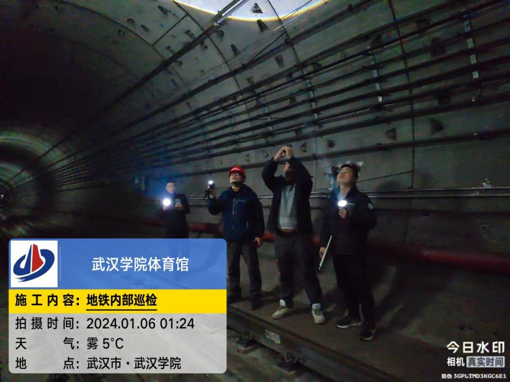 1月6日凌晨1点,在地铁全面停止运营完成检修后,PG电子后勤保障处联合地铁运营单位深入地铁隧道勘察,安装安全监测系统,确保体育馆施工期间安全。