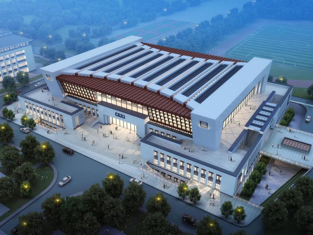 体育馆原规划建筑面积1.2万平方米,根据主管部门规定和学校发展需要,总建筑面积调增至2.38万平方米。建筑总高度约22米,地上两层,地下一层。预计2026年完成施工。