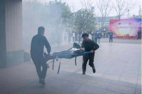 副校长周承早、后勤保障(保卫)处处长董运祥、副处长李晨光、学生工作处副处长戚兰、江夏区消防大队参谋何珍涛、江夏派出所驻校警官唐寅出席观摩本次演练。