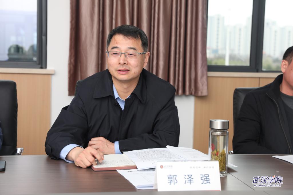 黄保红代表学校对郭泽强一行的到来表示热烈欢迎。他谈到,武汉警官职业学院办学历史悠久,享有良好的社会声誉,贵我两校拥有良好的合作基础,希望通过此次交流,进一步了解彼此的优势和特点,为联合培养人才找到更多的合作切入点。