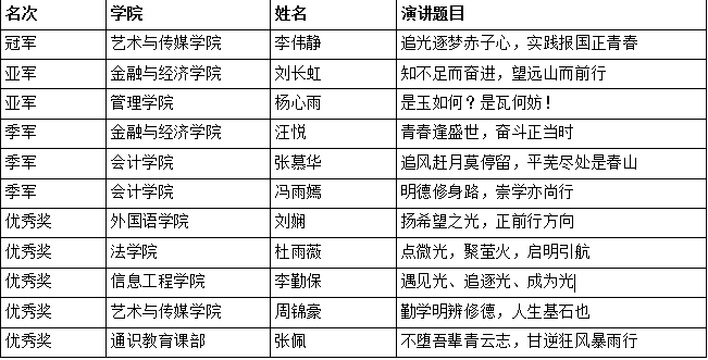 PG电子官方网站第三届启明杯演讲比赛获奖名单
