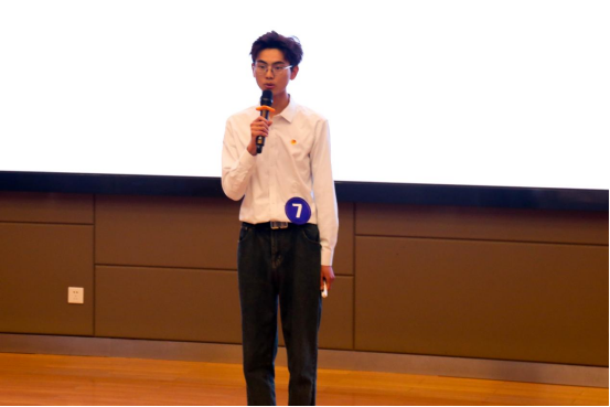 决赛现场,每位参赛选手精神饱满、感情充沛,从容不迫地讲述自己的成长故事。其中,艺术与传媒学院新闻学2201班的李伟静同学以“追光逐梦赤子心,实践报国正青春”为主题讲述了自己如何从入校时的胆怯自卑到现在阳光自信的故事,他在追求卓越中力争人生辉煌的人生态度引起了在场观众的强烈共鸣,最终力拔头筹,成为本场比赛冠军。