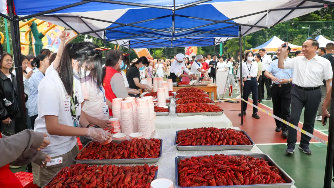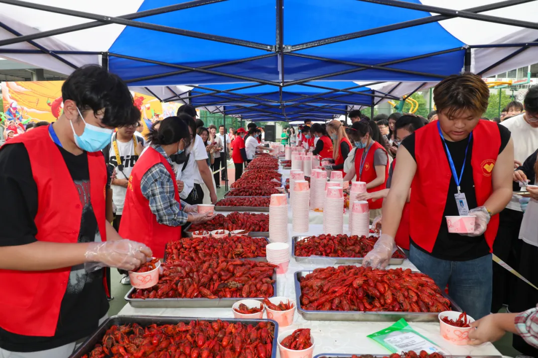 活动现场,香气四溢的小龙虾一字排开,有卤虾、清蒸、油焖、蒜蓉四种口味供师生选择,数十名志愿者负责分发,领取了小龙虾的师生脸上浮现出灿烂的笑容,对本次活动和小龙虾的味道都赞不绝口。