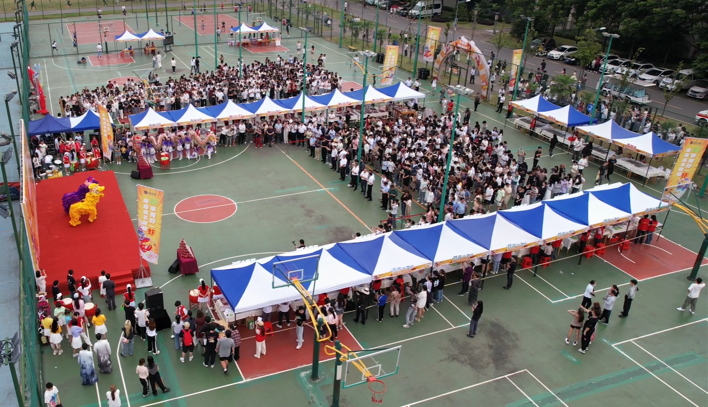 除了品尝美食,现场还有舞龙、舞狮、威风鼓表演、朗诵、街舞、乐队表演等精彩节目,同时还设置了吃虾比赛、钓龙虾、包粽子等丰富多样的互动游戏,文化气息浓郁,节日氛围拉满。