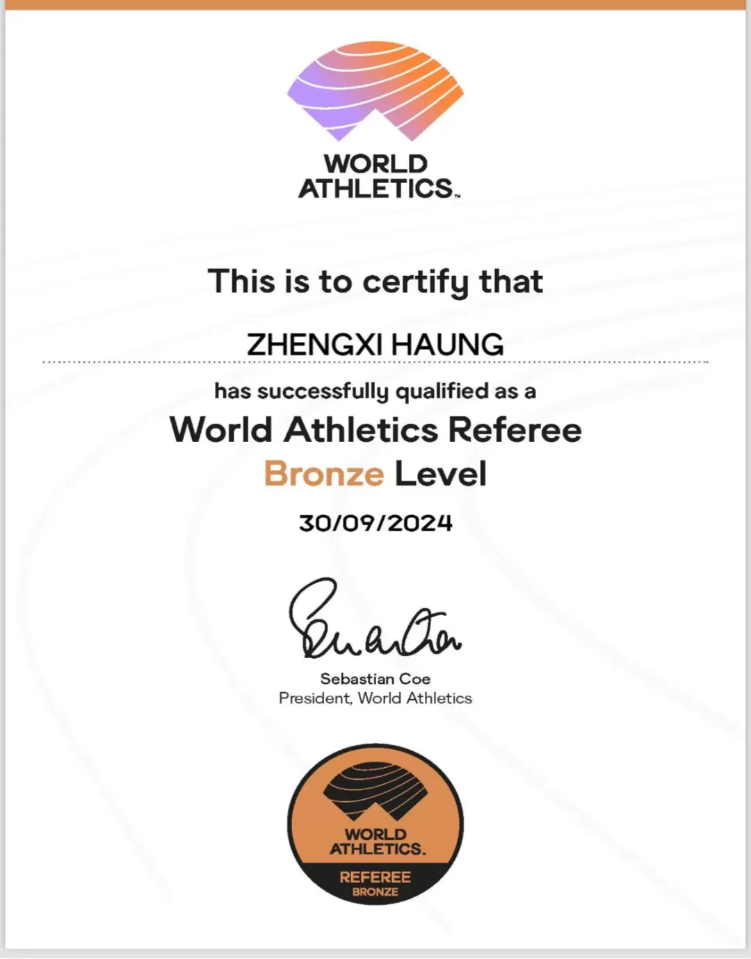 世界田联裁判员考试报名资格审查十分严格,报考者首先要有相应年限的国家级裁判员经验,同时对期间执裁过的比赛规格和次数也有要求。对照标准,2024年湖北省只有10人符合报名资格,黄正喜是其中一人,也是全省民办大学唯一人选。
