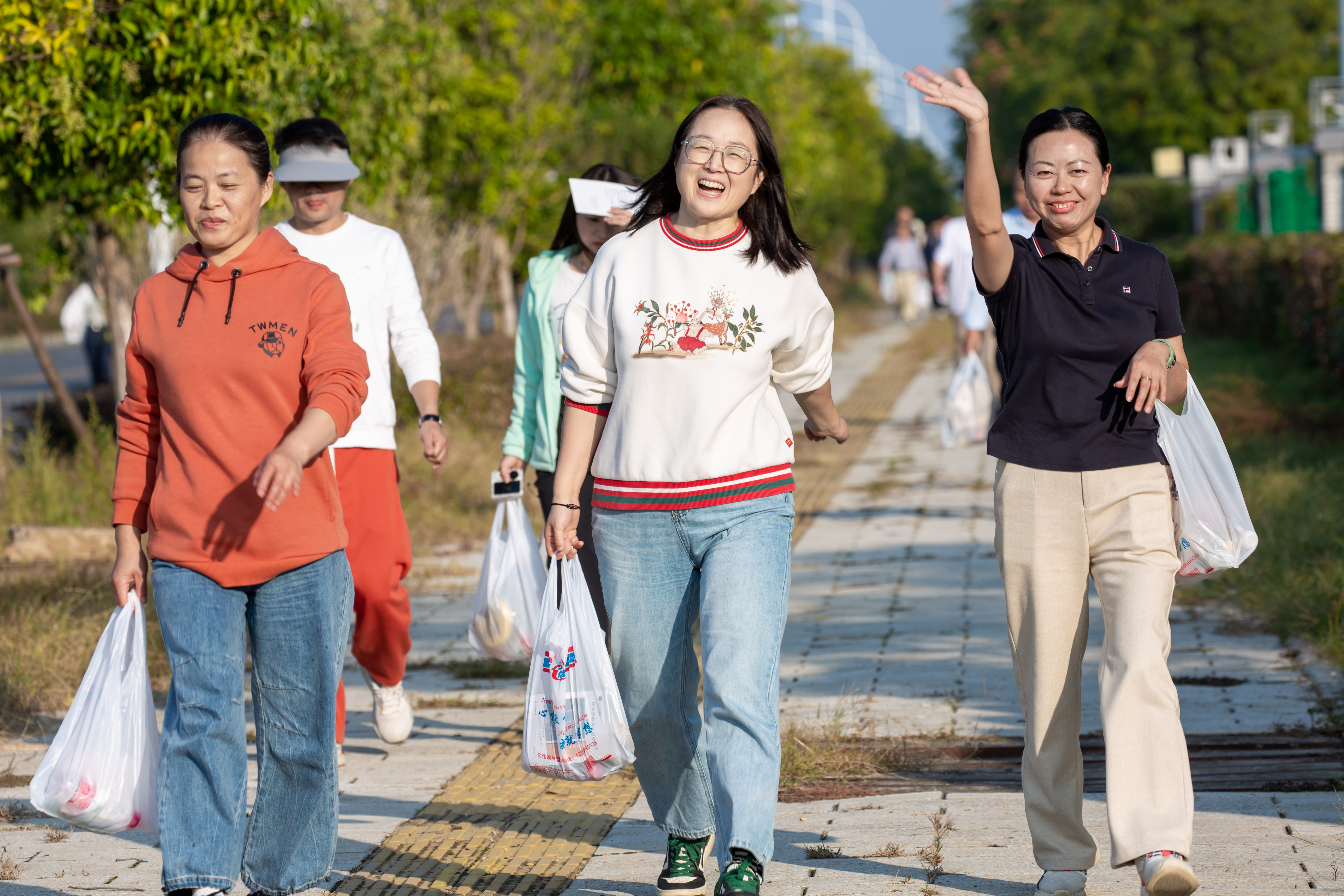 本次徒步路线环绕校区、沿黄家湖岸延长,沿途秋高气爽,风景明媚,全程共计5公里,中途设有卡点。教职工途径卡点时纷纷在志愿者的引导下完成打卡,达到终点时领取活动纪念品。大家表示,在强身健体的同时激发了活力,鼓舞了士气,将以积极进取的状态为学校高质量发展贡献智慧和力量。