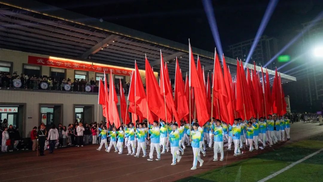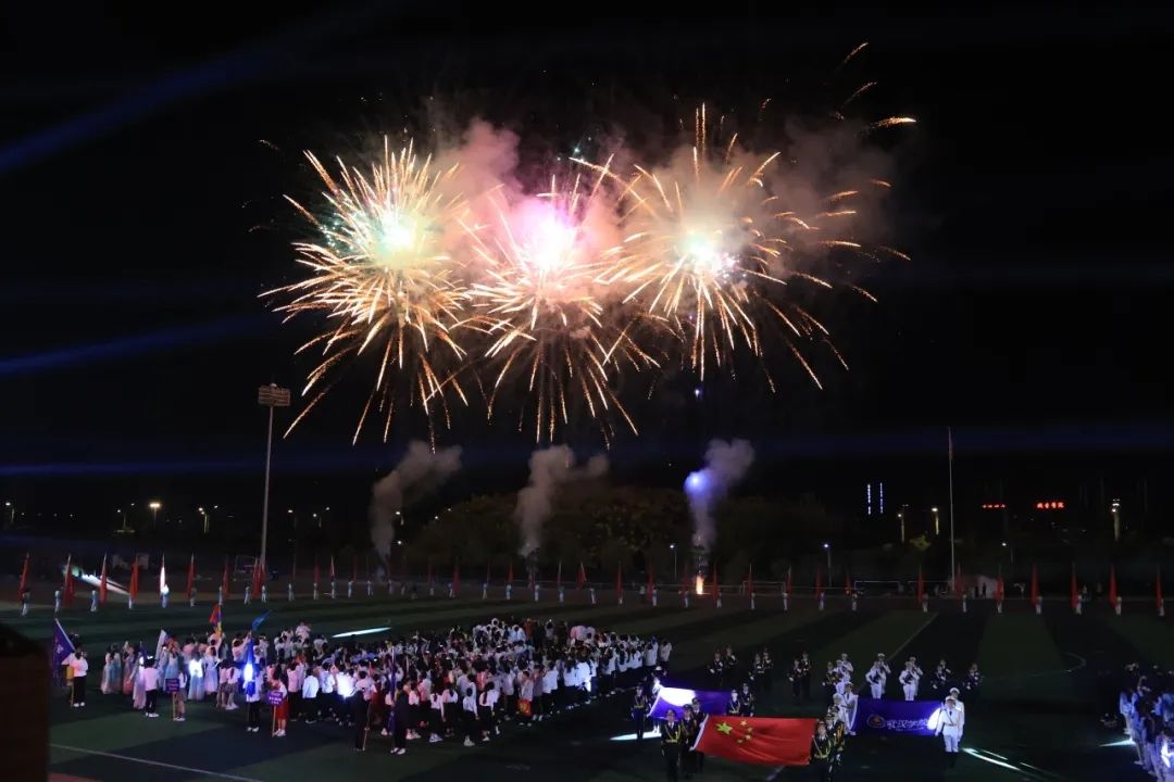 随着校长李忠云教授宣布本届运动会正式开幕,璀璨的烟火点亮了武院的夜空,也映照着每一位运动员和观众的脸庞,大家纷纷拿出手机记录下这“高燃”瞬间。