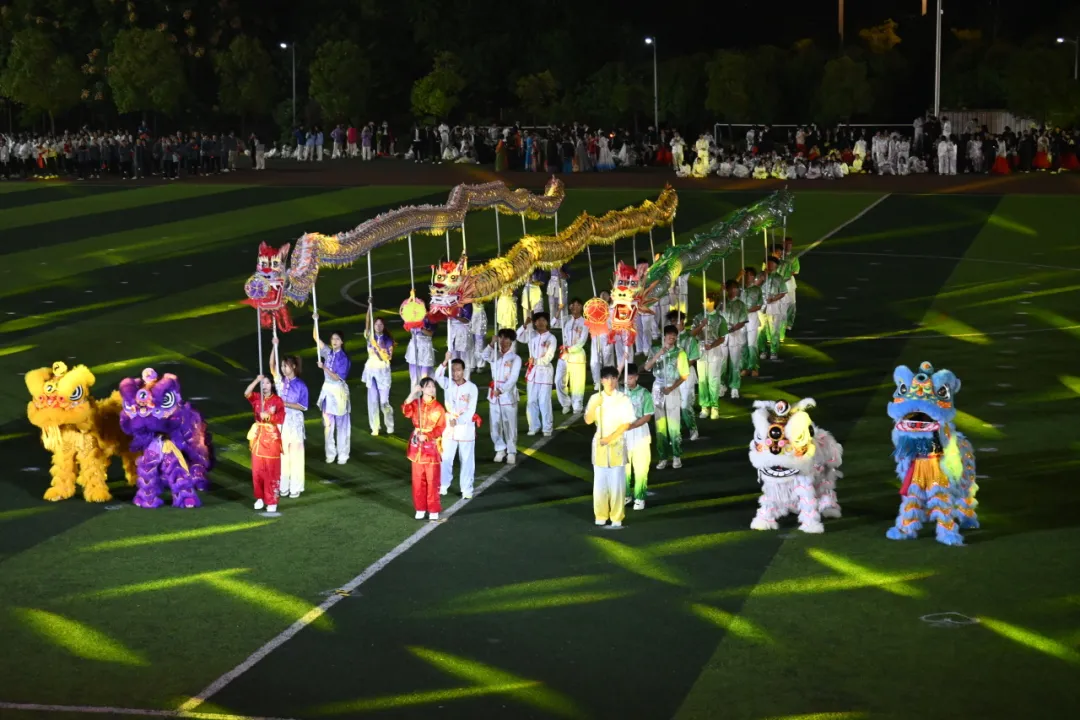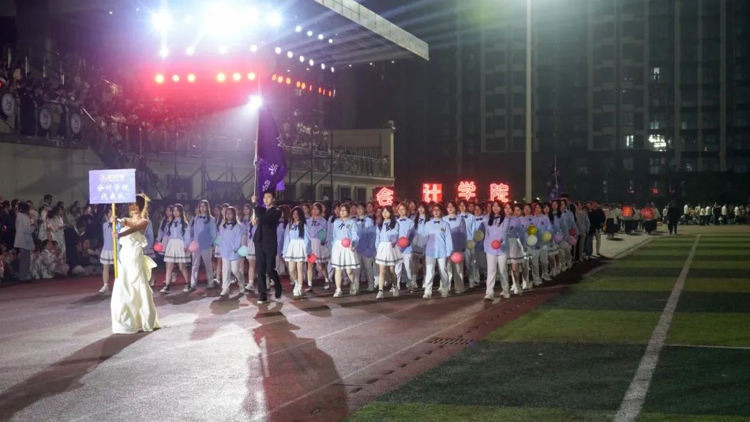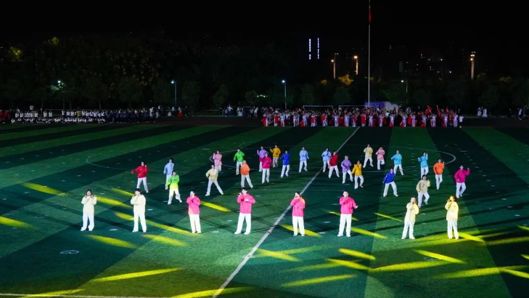 通识教育课部与校艺术团的同学们,身着多彩运动装,手持各式体育器材,活力四射;健美队的小麦色肌肤在灯光下闪耀,肌肉线条明晰,动作协调有力,尽显健康之美。