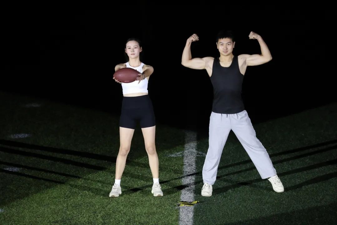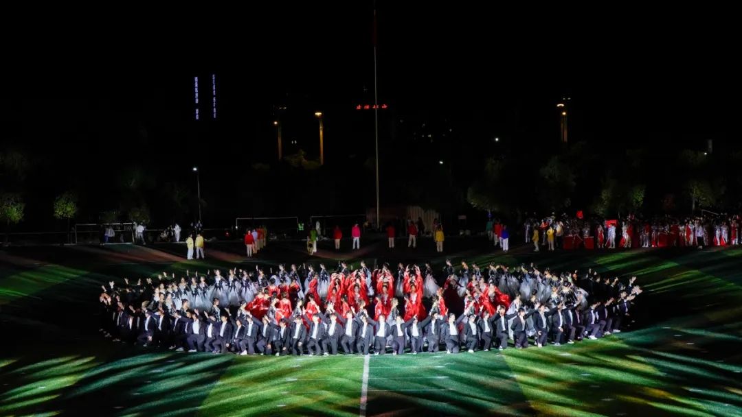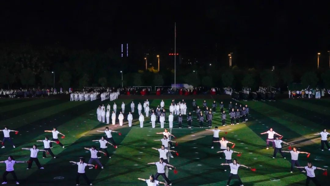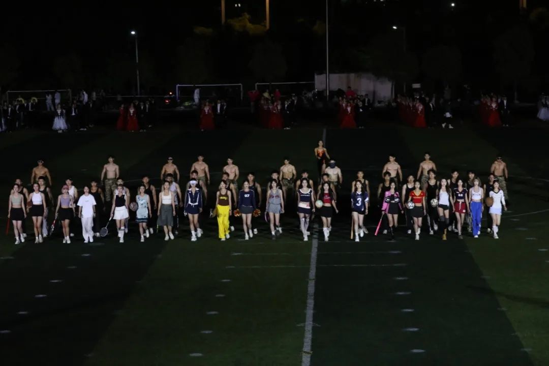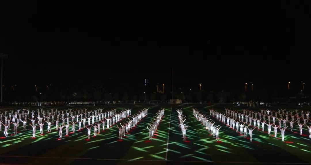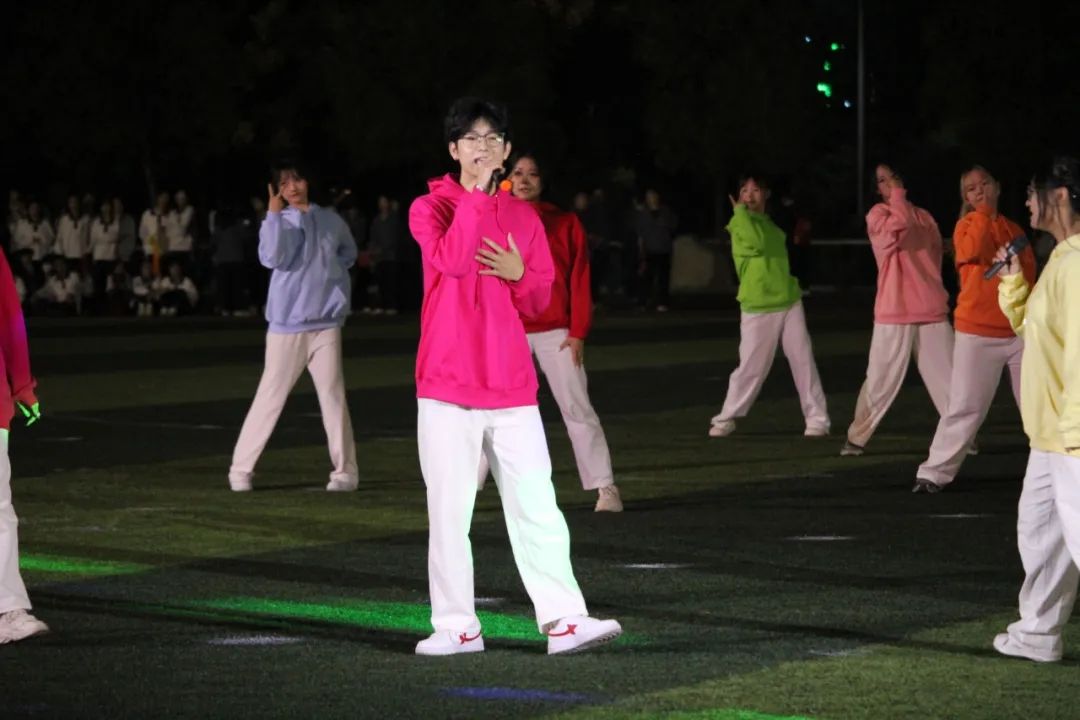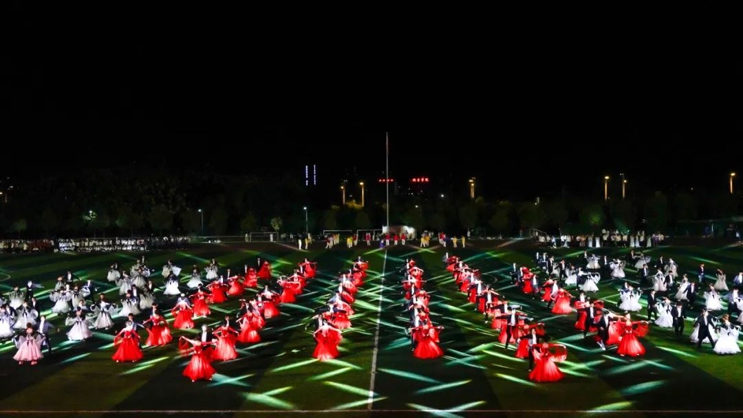 “舞步翩翩,呼吸浅浅”,灯光交错,与舞者脚步交织,优雅的华尔兹随着音乐律动。每一束光,每一次旋转,活力四射,操场化作青春的舞台。