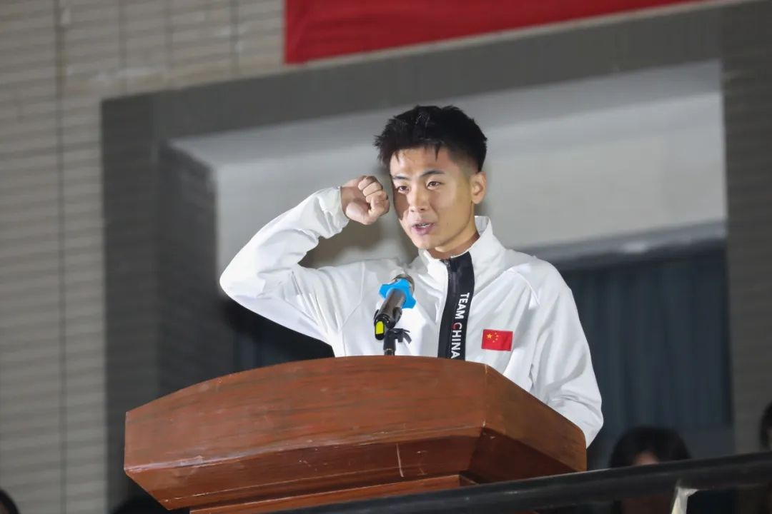 运动员代表史诺泽和裁判员代表杨帆先后上台宣誓,承诺在比赛过程中严格遵守竞赛规则,严格执行竞赛规程,尊重观众,尊重对手,赛出风格,赛出水平,以良好的道德风尚和优异的比赛成绩为本届运动会增光添彩。