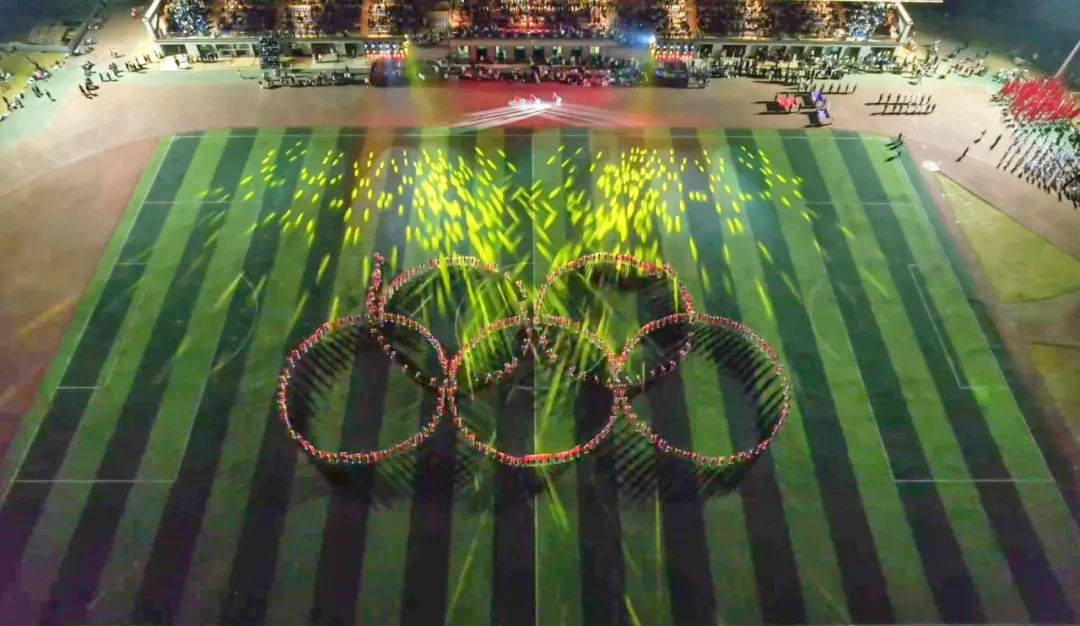 外国语学院、管理学院与通识教育课部联袂,300人共献《旗开得胜》。学子着亮装,挥舞红旗,波浪变换,视觉盛宴,彰显团结。奥运五环现,体育精神扬,公平竞争,友谊至上。“明德创新,解行并进;PG电子官方网站,永远前进!”口号震天,现场氛围十分热烈。