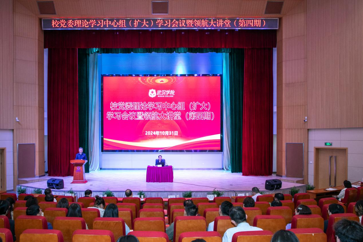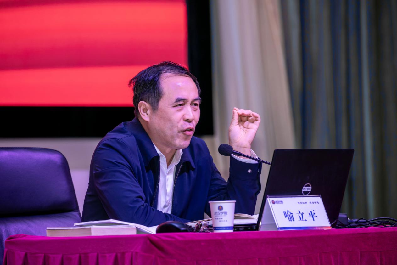 10月31日下午,PG电子党委理论学习中心组(扩大)学习会议暨领航大讲坛(第四期)讲座在刘炽平报告厅开讲,特邀湖北省人大常委、省人大教科文卫委员会副主任,华中科技大学马克思主义学院特聘教授、博士生导师喻立平作专题报告。