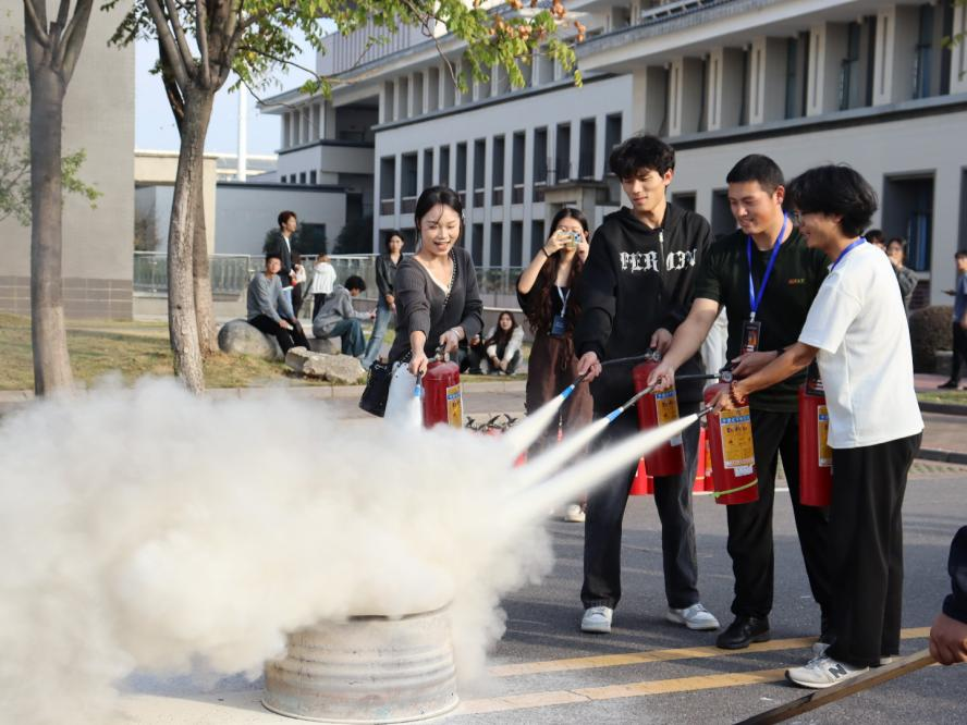 随后,消防队员为师生详细讲解消防器材使用方法,并进行现场演示。同学们在消防队员指导下,亲身体验灭火器材使用技巧。