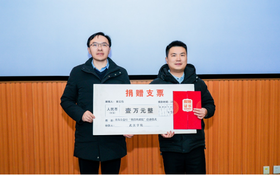 随后,校友公益行“我们的武院”启动仪式举行。许多校友为武院发展慷慨解囊,管理学院16级校友陈宏伟和15级校友杨达上台进行分享,陈宏伟为“我们的武院”公益行活动率先捐赠1万元人民币,杨达为学校图书馆捐赠摄影艺术相关文献资料。同时,聘任陈宏伟校友为武汉校友分会常务副会长。李世峰为陈宏伟颁发聘书,黄保红颁发捐献证书并合影留念。