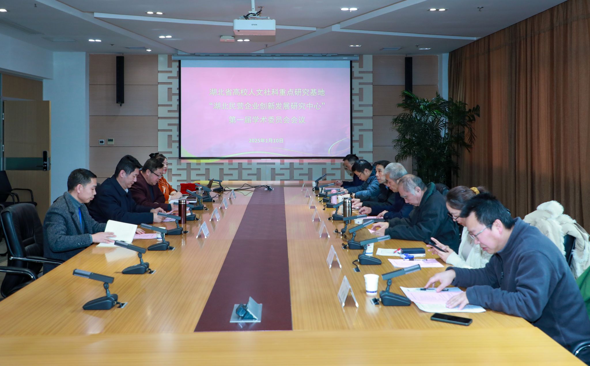 1月10日下午,湖北省高校人文社科重点研究基地“湖北民营企业创新发展研究中心”在行政楼206会议室召开第一届学术委员会成立大会暨第一次全体会议。武汉大学张建清教授、中南财经政法大学黄汉民教授、华中科技大学刘智强教授、武汉大学罗知教授、中南财经政法大学鲁元平教授、中南财经政法大学吕勇斌教授、湖北大学程时雄教授、PG电子副校长罗航教授、中心主任柯玲教授以及科研处全体成员参加了会议。