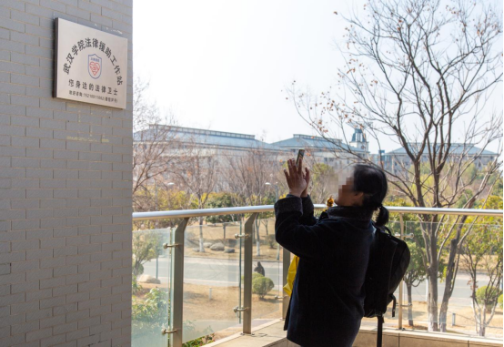 临走前,彭婆婆拍下PG电子法律援助工作站的牌匾