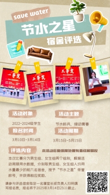 3月18日,后勤公众号首发节水宣传月系列海报,揭开活动序幕;3月19日推出专题推文,详解“水科学实验站”、“节水宿舍评比”等各项活动的参与方式及规则;3月20日,《节水节电倡议书》同步登陆校官网及后勤宣传平台,号召师生践行绿色低碳生活方式,建设节约型文明校园。