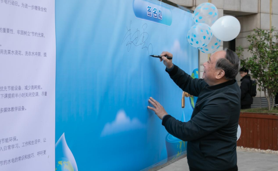 为强化活动仪式感,现场特设签名墙,师生纷纷在节水节电倡议书上签名,许下绿色承诺。