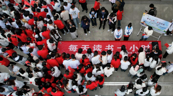 启动仪式最后,参与活动的师生还在“每天读书一小时”横幅上签字,读书月活动仪式感拉满。