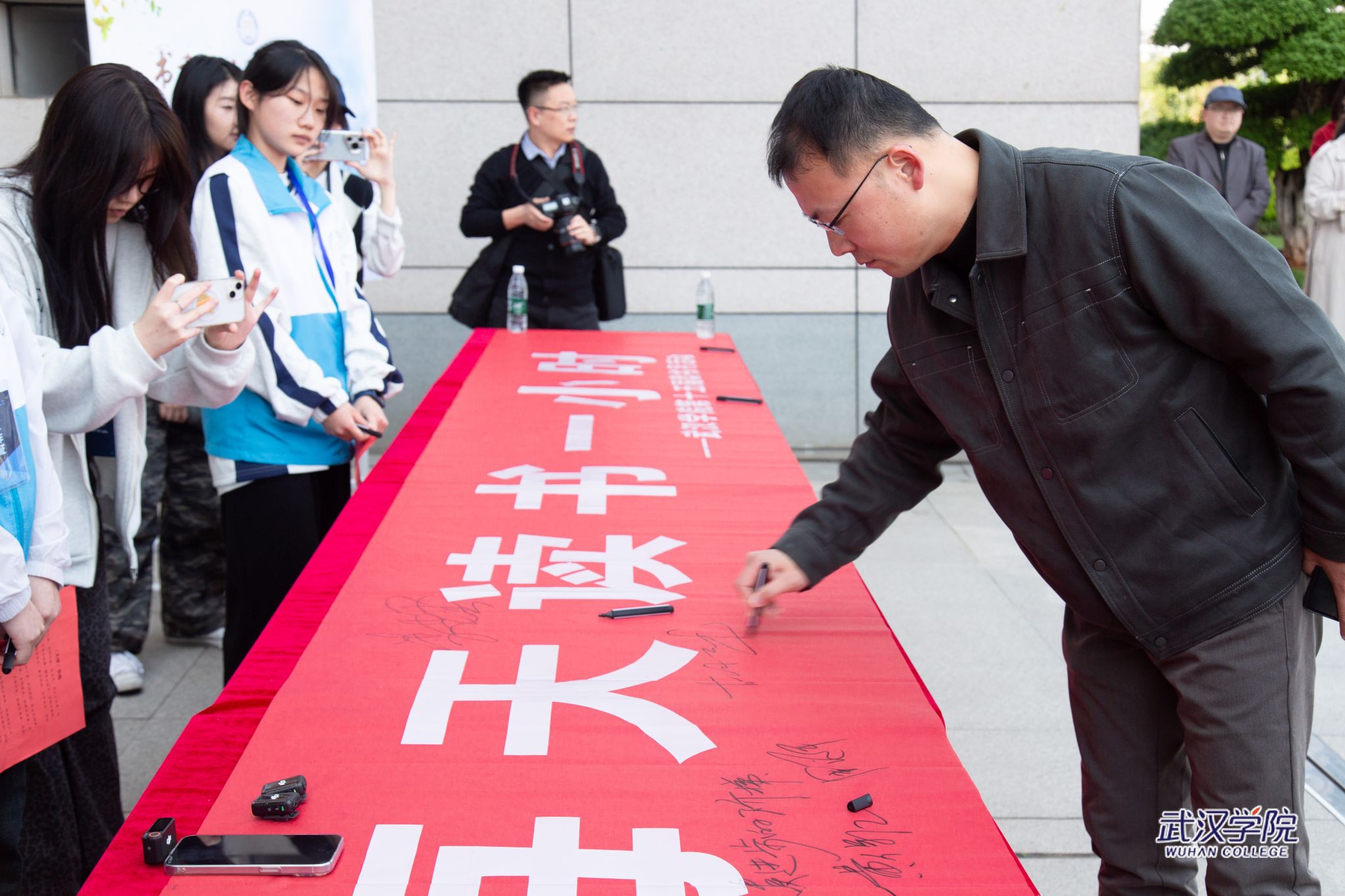 纪委书记、校长助理胡达丰在“每天阅读一小时”横幅上签名(摄影:曹珈瑞)