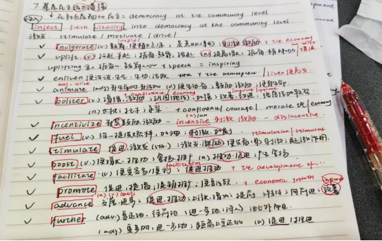 但浚认为,学习英语没有诀窍,它属于一个长期的积累过程,关键在于坚持。起初她也像很多同学一样觉得学习英语枯燥无味,但久而久之她发现,掌握词汇量能帮助她在做题时扫除语言障碍。积累大量词汇的同时,还深入了解近义词,同义词,反义词,以及各种词之间的辨析用法,同时探究词或短语的相关内涵和文化背景,慢慢感受到了英语学习的乐趣。