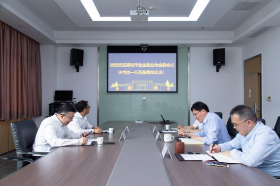 4月10日上午,高校毕业生就业协会副会长(驻会)许世杰 ,武汉华育诺为信息技术有限公司总经理宁柯来校调研。学校党委副书记、副校长黄保红,校长助理、人事处处长强静仁,学生工作处处长李世峰在204会议室与来宾座谈。