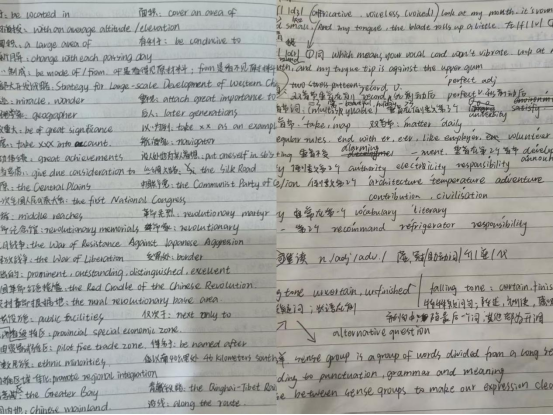 肖枫怡坦言,高中之前的她,英语基础极为薄弱。她回忆道:“我小学和初中时英语成绩都很糟糕,直到初二,有时候英语成绩还只有20分。当时很多题目我都看不懂,根本不存在思考的过程,做选择题时都是随便乱选,更不会去考虑语法结构,可以说我是从高一开始才正式学习英语的。”高一时,英语老师要求学生晨跑之后读背单词,午休时训练听力,晚上听写单词,平时还会安排大量的阅读训练。这种方式让肖枫怡找到了学习英语的窍门,在日复一日的训练下,她的英语成绩逐步提升,从不及格到高考取得112分,这对肖枫怡来说是极大的鼓舞。背单词的习惯她一直保持至今,6年来,她每天坚持背150个单词。长期的记忆习惯也使她拥有了敏锐的记忆力,对一些内容更为敏感,记忆速度也比同龄人更快。