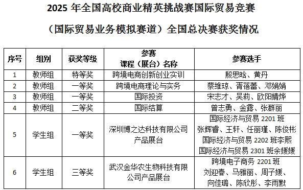 2025年全国高校商业精英挑战赛国际贸易竞赛总决赛近日圆满落幕,来自全国198所高等院校的408支参赛团队入围本届全国总决赛。PG电子金融与经济学院4支教师队伍和2支学生队伍参加国际贸易业务模拟赛道,荣获教师组特等奖1项、一等奖2项和二等奖1项;学生组一等奖1项和三等奖1项;学校荣获“最佳组织奖”。