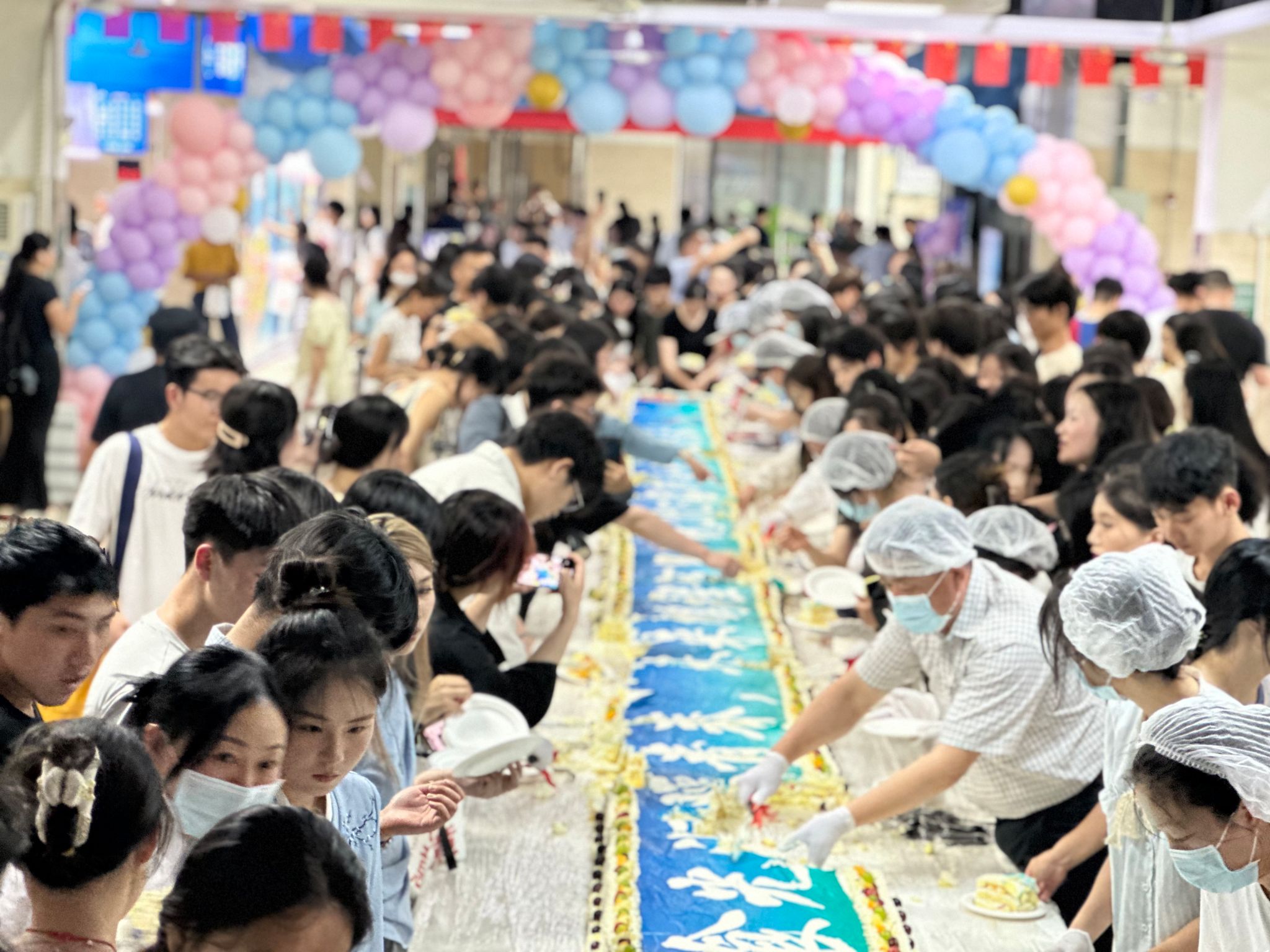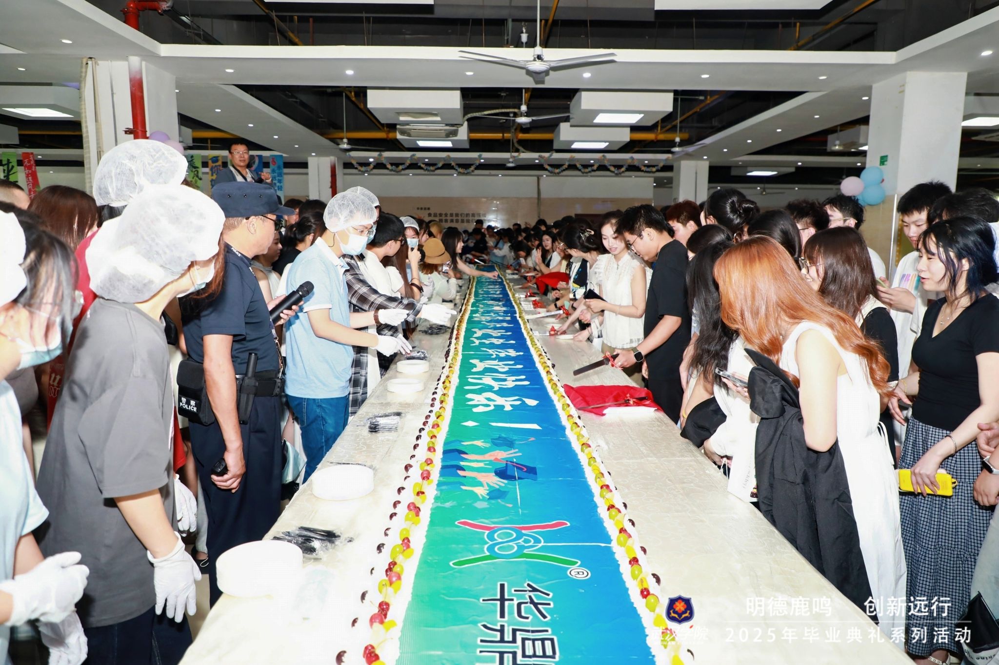 据后勤保障处处长董运祥介绍,这款长16米的蛋糕(宽0.6 米)寓意深刻,一是借“16=一路”谐音,祝福2025届毕业生“前程似锦,一路顺遂”;二是“0616”巧妙呼应着毕业典礼的日期,希望大家带着“母校味道”开启新程。