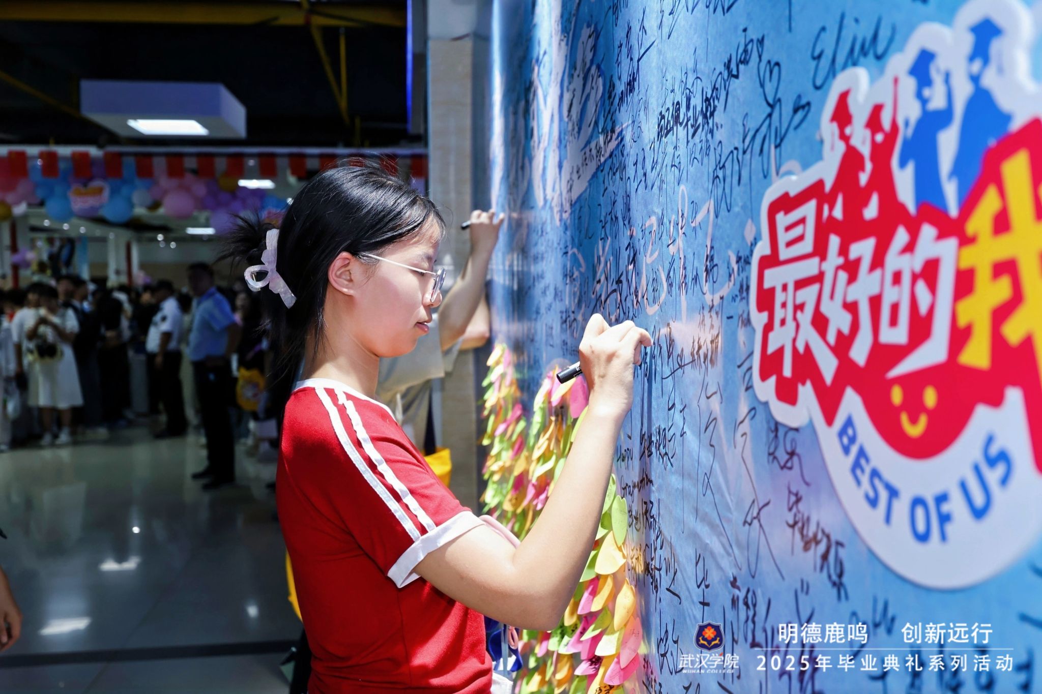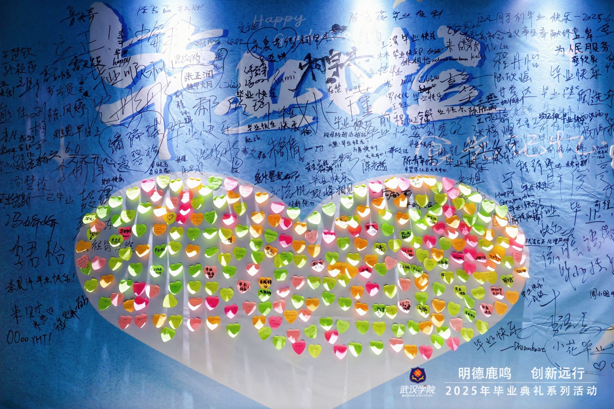 活动现场还设置了毕业寄语墙以及吃西瓜、套西瓜等趣味环节。毕业生们纷纷在寄语墙上留下对未来的期许与祝福。轻松愉快的游戏则让现场充满了欢声笑语。在母校的最后一餐,一块块递到手中的蛋糕,都承载着母校的殷殷祝福;一句句写在墙上的“毕业快乐”,铭刻着属于2025届学子的青春印记;一碗碗从食堂阿姨手上接过的热饭,成了对母校最后的回味。
