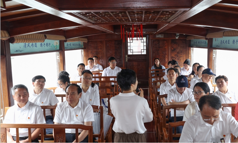 “一叶红船,承载着人民的重托、民族的希望,越过急流险滩、穿过惊涛骇浪,成为领航中国行稳致远的巍巍巨轮……”在嘉兴南湖的游船上,全体学员认真聆听了一堂生动的“水上党课”,重温开天辟地、敢为人先的首创精神,坚定理想、百折不挠的奋斗精神,立党为公、执政为民的奉献精神。