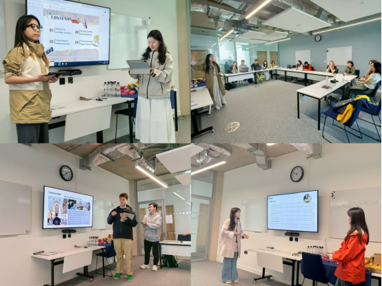 课程学习结束后,国际菁英班的同学们以“My first look at postgraduate life in UK” 为主题进行小组展示。大家结合这段时间在巴斯大学的学习和生活感受,通过精心制作的 PPT、生动的语言表达,向老师和同学们分享了自己的所见、所闻、所思、所感。汇报结束后,巴斯大学的项目负责人为同学们颁发了结业证书,这标志着同学们在巴斯大学的学习阶段完美结束,也为他们这段充实的学习之旅画上了一个圆满的句号。