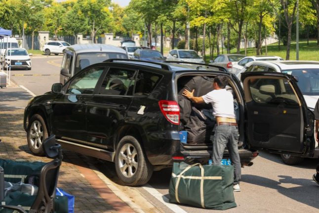 5日上午,在樟槐斋宿舍门前,信息工程学院副院长冯浩正忙着帮学生搬运行李,他告诉记者,为了协调好搬迁工作,学院动员辅导员、班主任主动作为,前往搬迁一线,现场协助秩序维护、人员疏导、跟车指引等工作,还派出30名教师开着私家车帮学生们运行李,大大提升了搬迁效率。