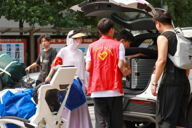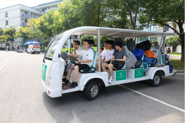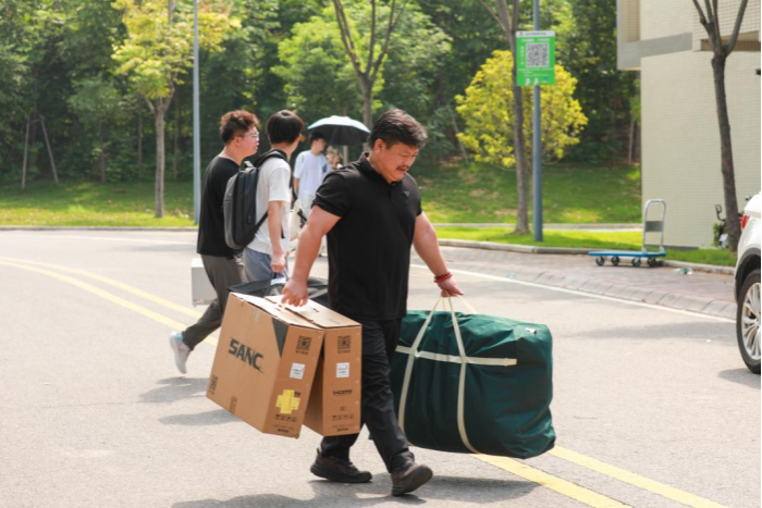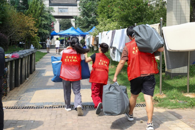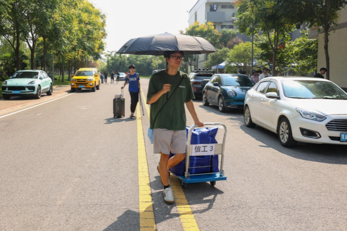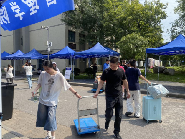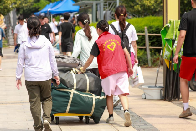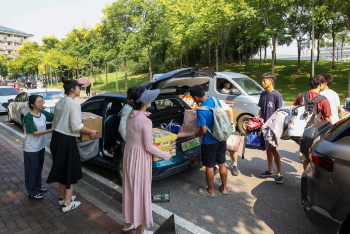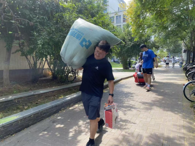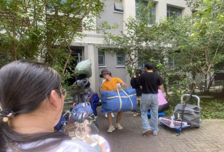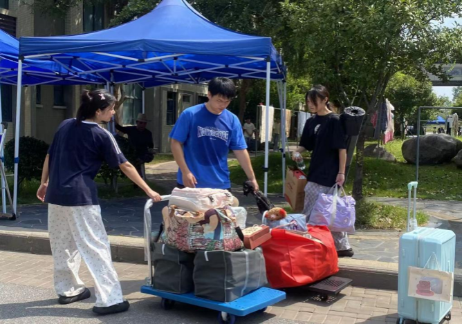 “学校为大家提供了免费的矿泉水、小拖车和行李打包袋,还安排了志愿者帮我们搬行李。新宿舍如果有人还未搬走,打电话给辅导员也会第一时间协调解决,不会让我们等太久。”来自会计学院24级的夏同学为学校的高效组织和暖心服务点赞。
