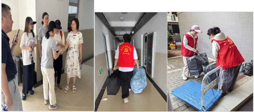 搬迁当日,学院提前准备了藿香正气水、创可贴、碘酒等在医疗用品,还有矿泉水、纸巾、小扇子等物资,为学生们在炎热天气下的搬迁工作提供了贴心支持。教师党员深入学生宿舍,了解学生的整体搬迁情况,并深入宿舍开展安全检查,帮助学生搬移重物。“新青年”党员先锋队的志愿者们充分发扬了“奉献、友爱、互助、进步”的志愿精神,主动帮助同学们搬运行李、指引路线、维持秩序。他们用实际的行动和真诚的笑容诠释了同窗情谊与责任担当,极大地提高了搬迁效率,也温暖了每一位搬迁同学的心。