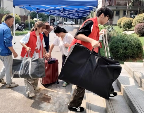 13位党员教师“爱心搬运队”,齐心协力助力学生宿舍搬迁。9月2日,通识教育课部13名党员班主任教师提前到校,自发组织“爱心搬运队”,驾驶自己的私家车化身“校园摆渡人”,在高温酷暑中协助学生完成宿舍搬迁工作。“看到学生们大包小包在烈日下奔波,我们作为党员,觉得必须做点什么”,参与活动的高超老师表示。通识教育课部党总支副书记魏成杰强调:“老师们要以躬身示范传递人文关怀,用言行一致诠释教育温度。”2023级社体专业张同学感慨:“当看到老师们的私家车变成了‘专属运输车’,连矿泉水、防暑降温的藿香正气水、防止同学们受伤的创口贴、碘伏和云南白药喷雾剂都给准备好了,这种被重视的感觉让人特别温暖。”